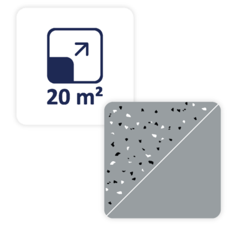 The Purios Epoxy Floor PRO epoxy floor is available in a wide range of 19 RAL colors, allowing you to match the epoxy floor to any interior – from classic grays to modern, designer shades. Additionally, decorative flakes can be applied to create an elegant, decorative epoxy floor with a stylish effect.