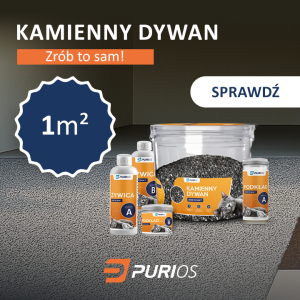 Przy niewielkich powierzchniach warto rozważyć wykonanie kamiennego dywanu samodzielnie. Pomocny będzie zestaw Purios Stone Floor DIY, dzięki któremu kamienny dywan można wykonać już za 249 zł za 1 m².