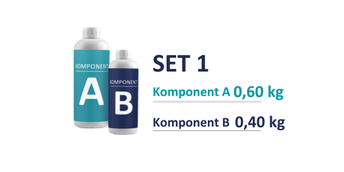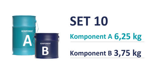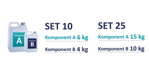 Dostępne zestawy (SET 1, SET 10, SET 25) zawierają odpowiednio odmierzone ilości komponentu A i B, co zapewnia wygodę mieszania i aplikacji. Dzięki tej elastyczności nie tylko zoptymalizujesz budżet, ale również zminimalizujesz odpady i uprościsz cały proces wykonania posadzki.